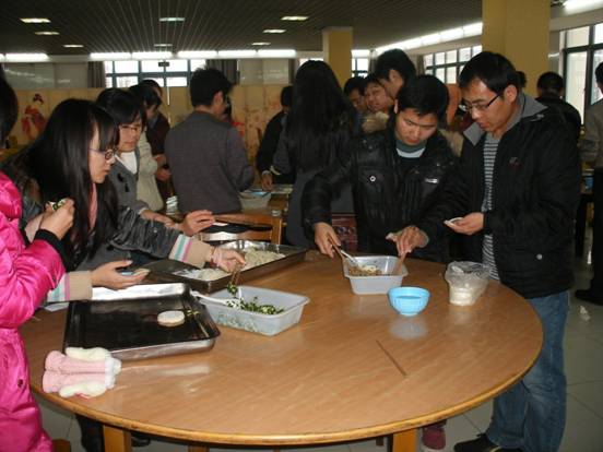 2012新年的钟声还没有响起,通大主校区一食堂已有了节日的气氛,传出洋溢着青春活力的笑声。这是我院研究生会与文学院研究生会联合举办的以包饺子为主题的研究生元旦联谊活动。