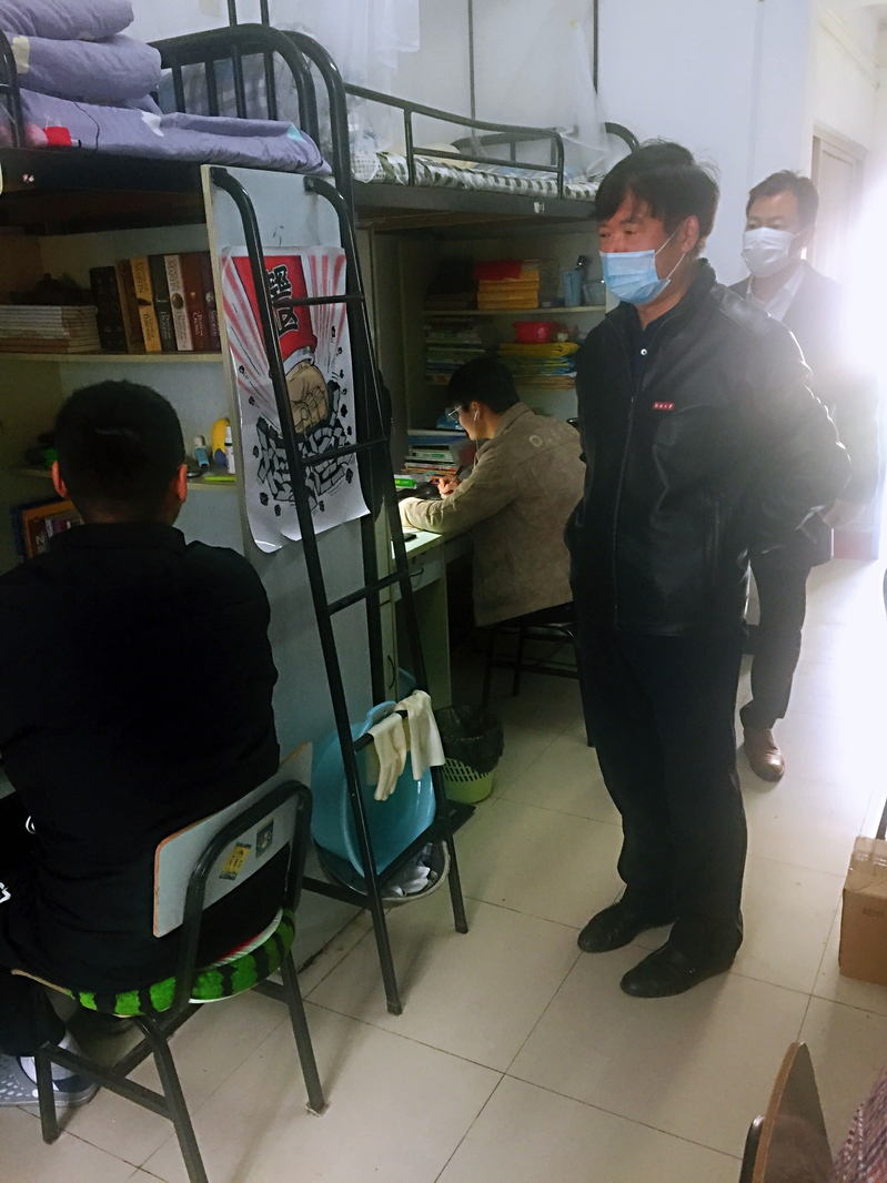 4月22日上午,校长施卫东深入其担任班主任的yl6809永利机设191班以及机设192班学生宿舍看望返校学生,开展学生宿舍巡课。